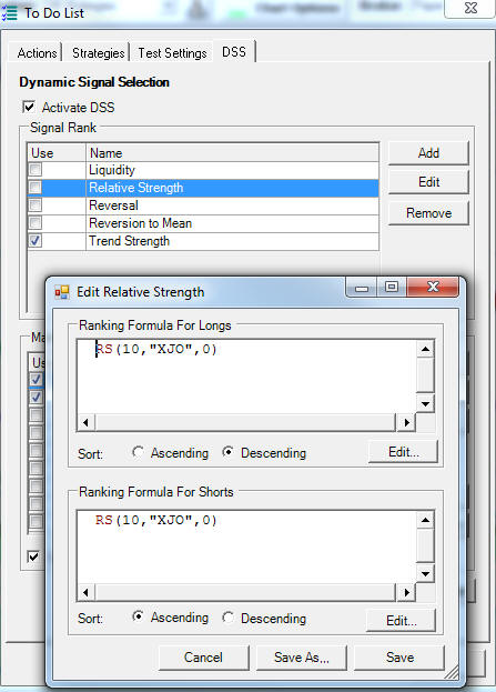 If you activate DSS ensure that you modify any analysis which uses US indexes, so for example the Ranking of Relative Strength should be changed to XJO as in this example.